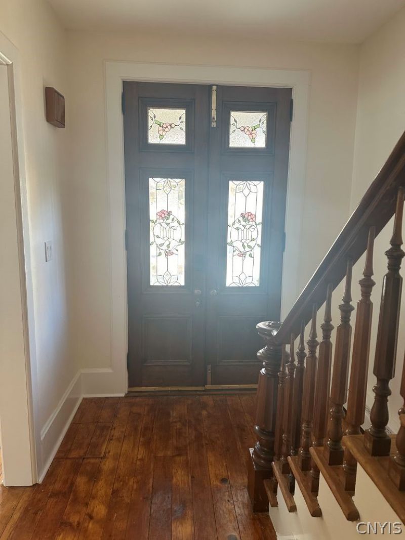 Historic Home, in the heart of the village of Fayetteville. This newly remodeled front apartment features a 2-story layout with approx. 2000 sq ft. of living space. A lovely stained glass door leads to a Foyer with a grand staircase that leads to the second floor. There you'll find a full bath and 3 bedrooms. the first floor consist of Livingroom, formal dining room, eat-in kitchen, a full bath. Back downstairs features Private laundry, walk-out Basement! Impressive backyard, that will show the signs of spring in a beautiful way with gorgeous flowers. Take a nice walk to the Erie Canal path or nearby parks or stores. Towne Centre, restaurants, Library all so very close by and convenient. This home is also convenient to all surrounding Highways etc. But most of all you will love the peacefulness of Fayetteville. You won't want to leave. Come and take a tour! You will be glad that you saw this home first.....